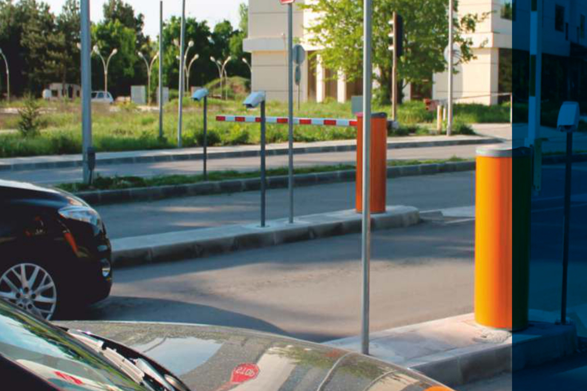 Gate Barrier: The movable arm raises and lowers to allow the vehicle to enter or leave the building.